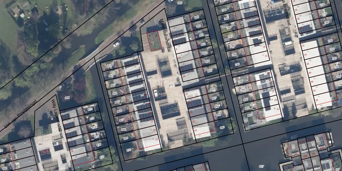 Gebruik de zoekbalk of klik op een perceel om informatie over het perceel te bekijken.