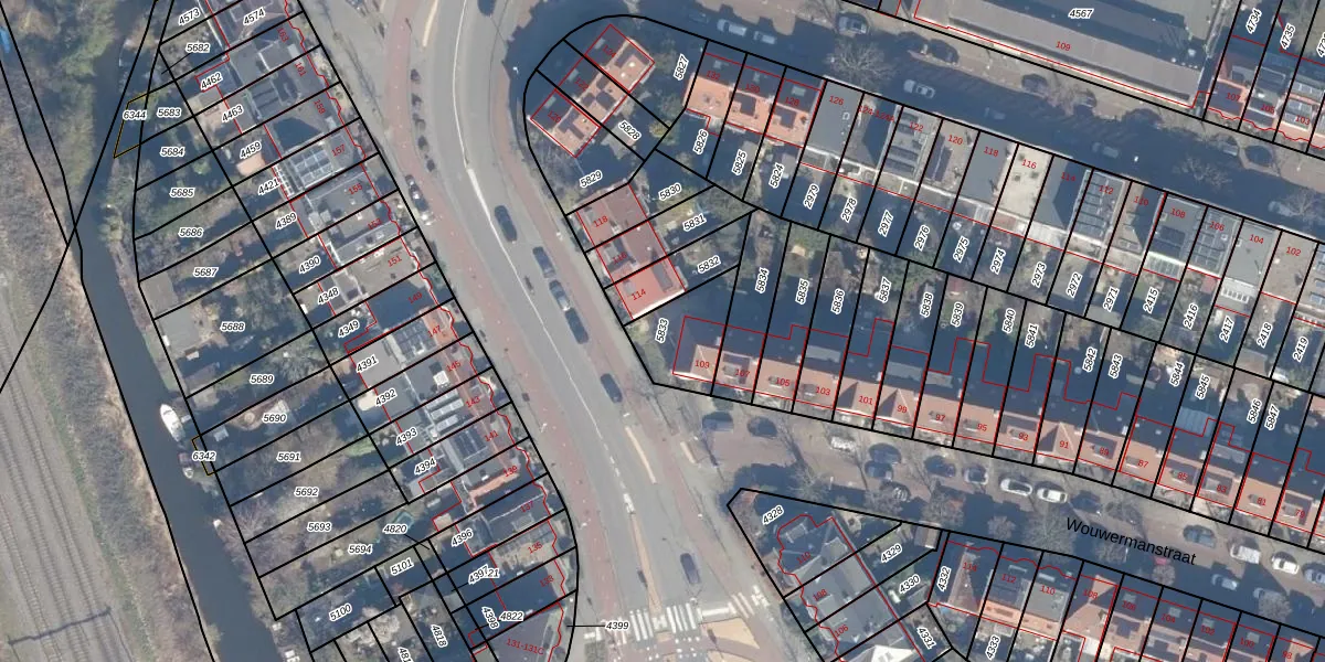 Gebruik de zoekbalk of klik op een perceel om informatie over het perceel te bekijken.