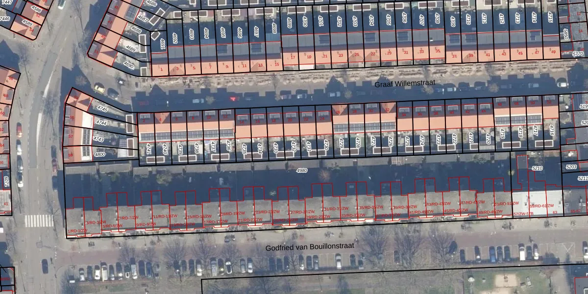 Gebruik de zoekbalk of klik op een perceel om informatie over het perceel te bekijken.