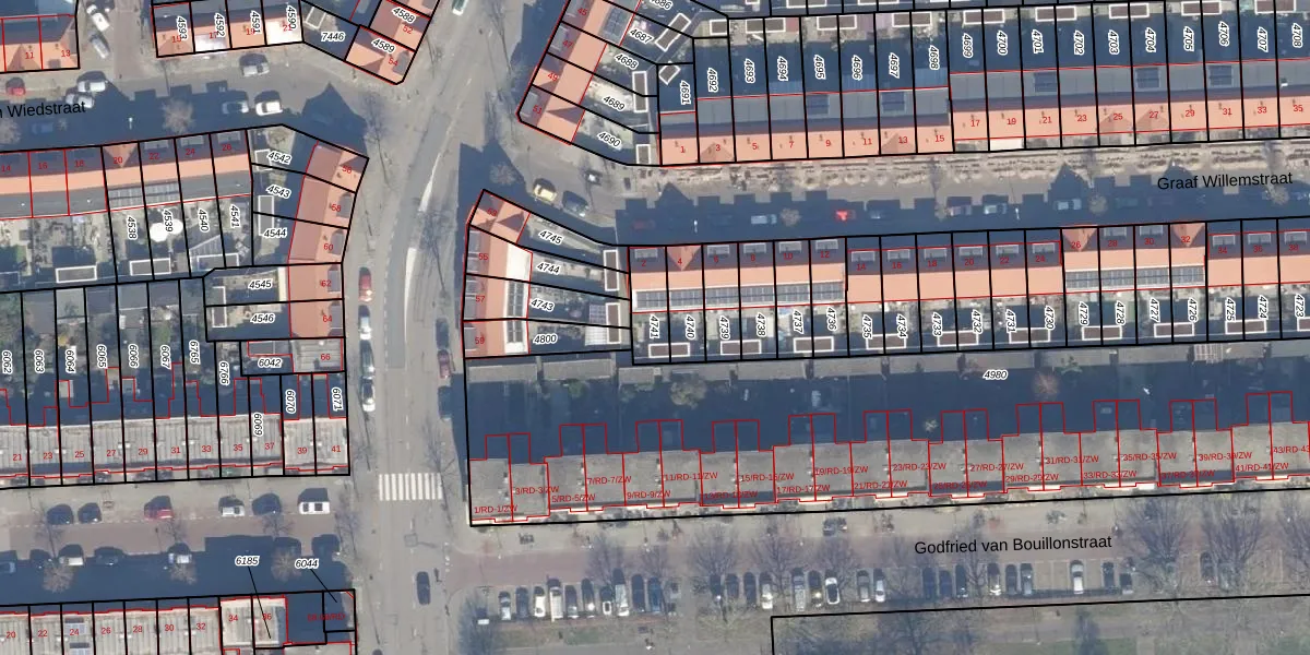 Gebruik de zoekbalk of klik op een perceel om informatie over het perceel te bekijken.