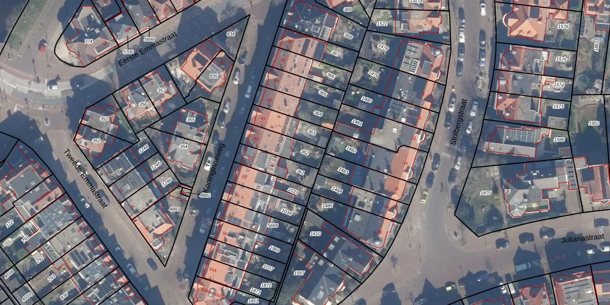 Gebruik de zoekbalk of klik op een perceel om informatie over het perceel te bekijken.