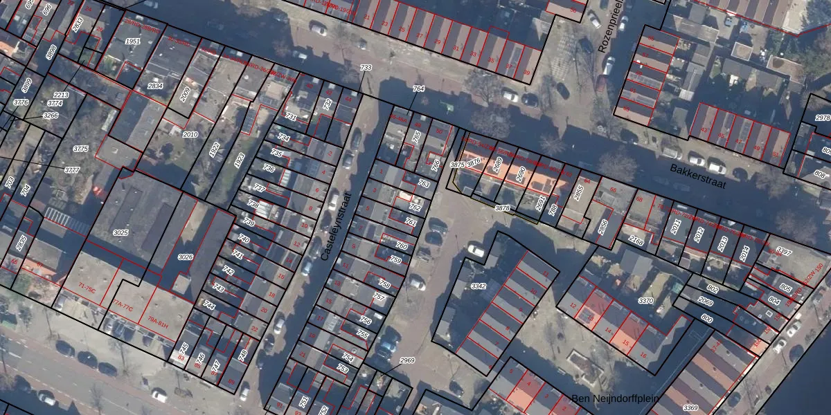 Gebruik de zoekbalk of klik op een perceel om informatie over het perceel te bekijken.