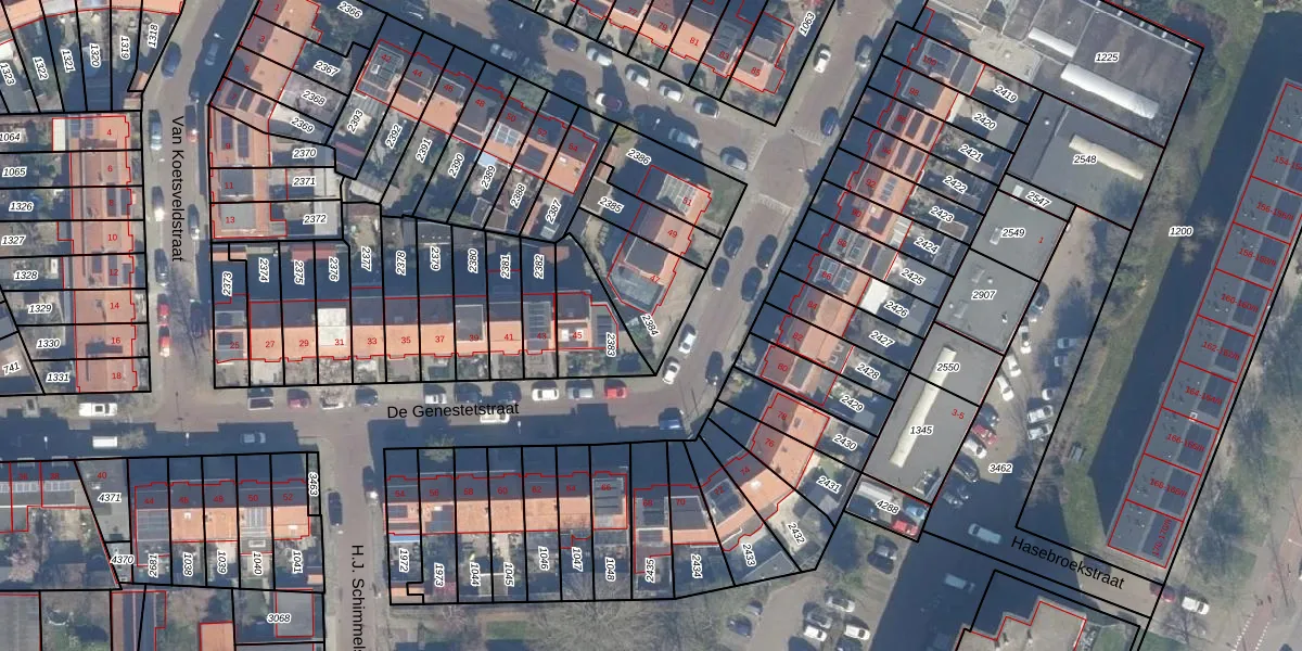 Gebruik de zoekbalk of klik op een perceel om informatie over het perceel te bekijken.