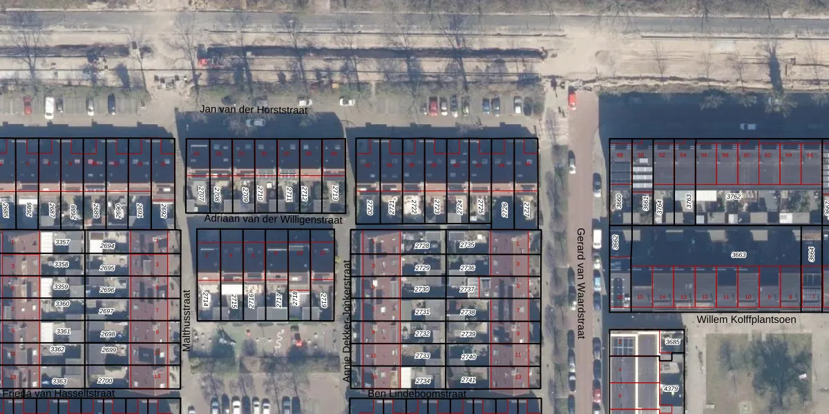 Gebruik de zoekbalk of klik op een perceel om informatie over het perceel te bekijken.