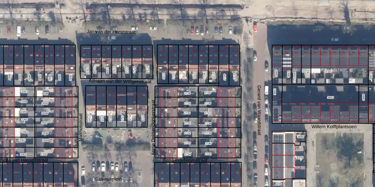 Gebruik de zoekbalk of klik op een perceel om informatie over het perceel te bekijken.