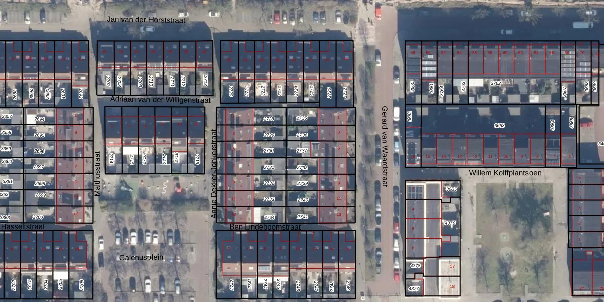 Gebruik de zoekbalk of klik op een perceel om informatie over het perceel te bekijken.