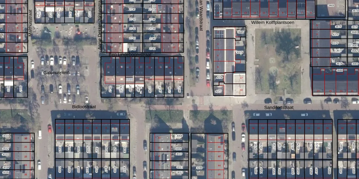 Gebruik de zoekbalk of klik op een perceel om informatie over het perceel te bekijken.