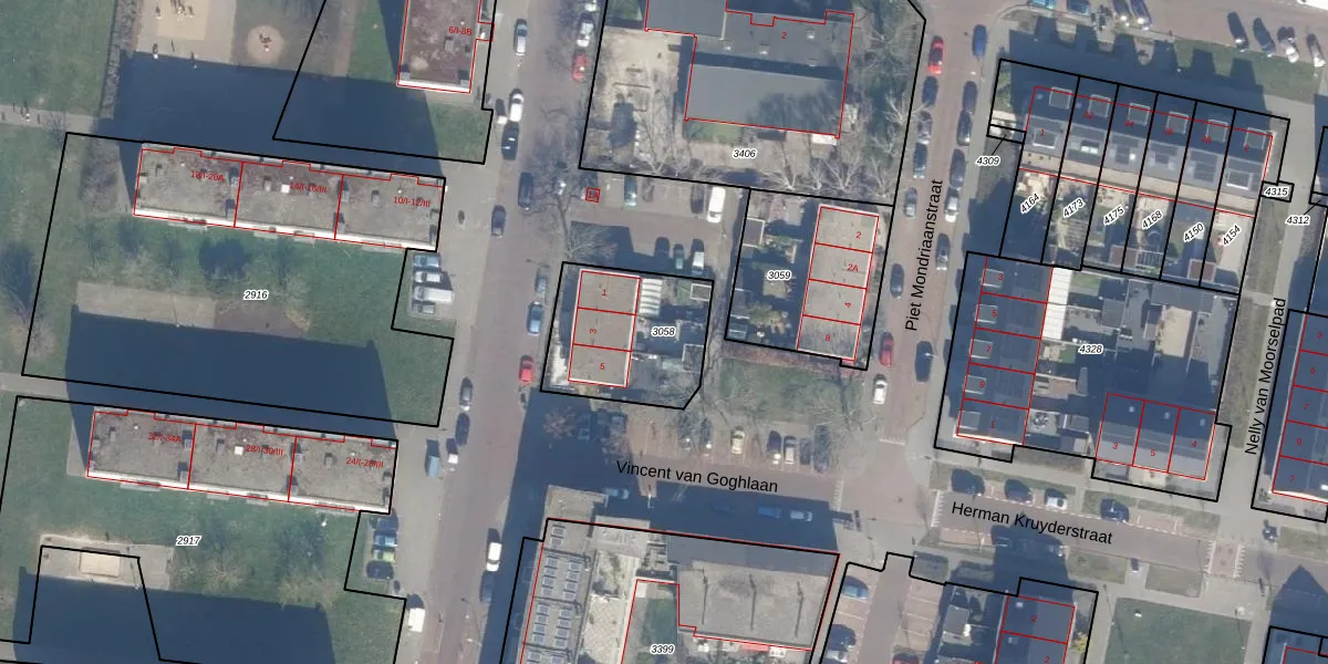 Gebruik de zoekbalk of klik op een perceel om informatie over het perceel te bekijken.