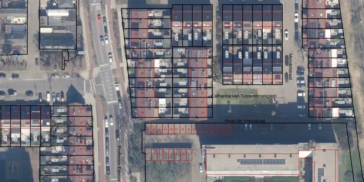 Gebruik de zoekbalk of klik op een perceel om informatie over het perceel te bekijken.