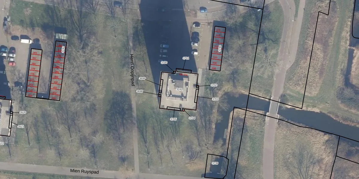 Gebruik de zoekbalk of klik op een perceel om informatie over het perceel te bekijken.