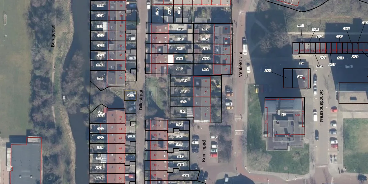 Gebruik de zoekbalk of klik op een perceel om informatie over het perceel te bekijken.
