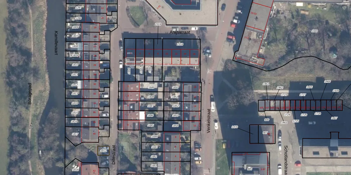 Gebruik de zoekbalk of klik op een perceel om informatie over het perceel te bekijken.