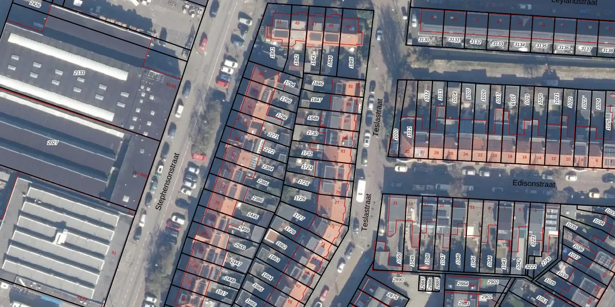 Gebruik de zoekbalk of klik op een perceel om informatie over het perceel te bekijken.