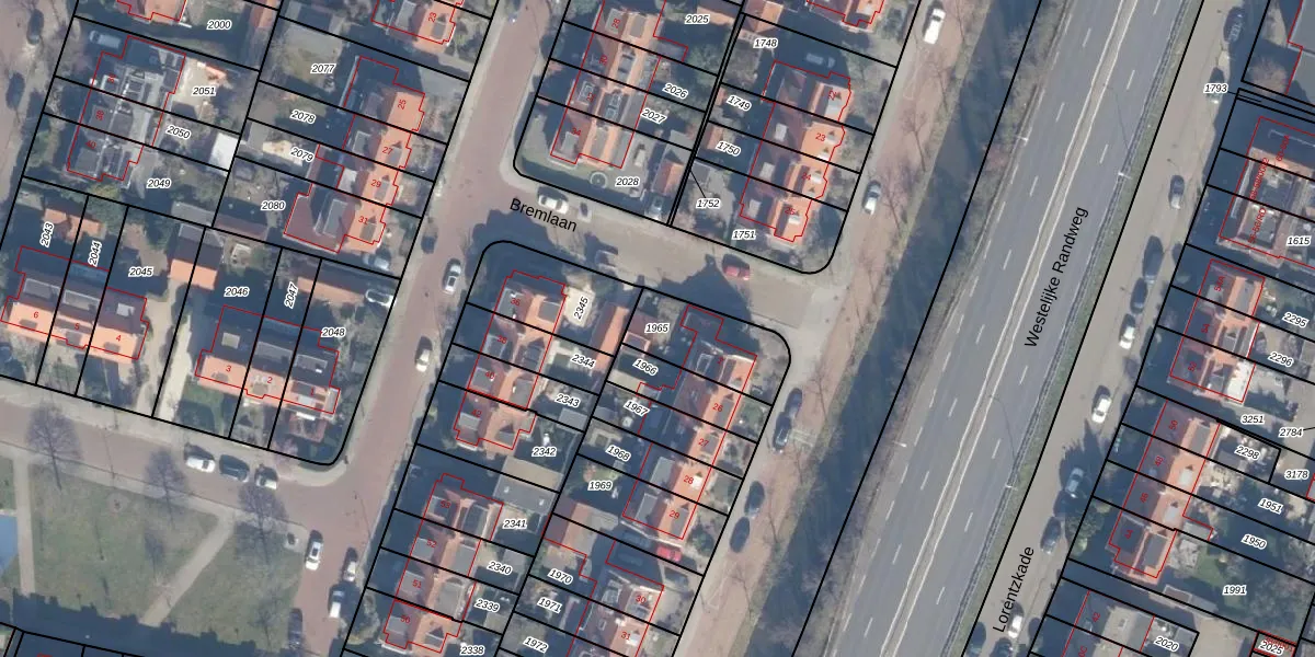 Gebruik de zoekbalk of klik op een perceel om informatie over het perceel te bekijken.
