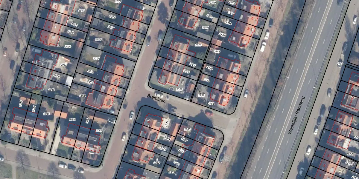 Gebruik de zoekbalk of klik op een perceel om informatie over het perceel te bekijken.