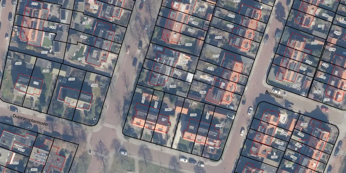 Gebruik de zoekbalk of klik op een perceel om informatie over het perceel te bekijken.