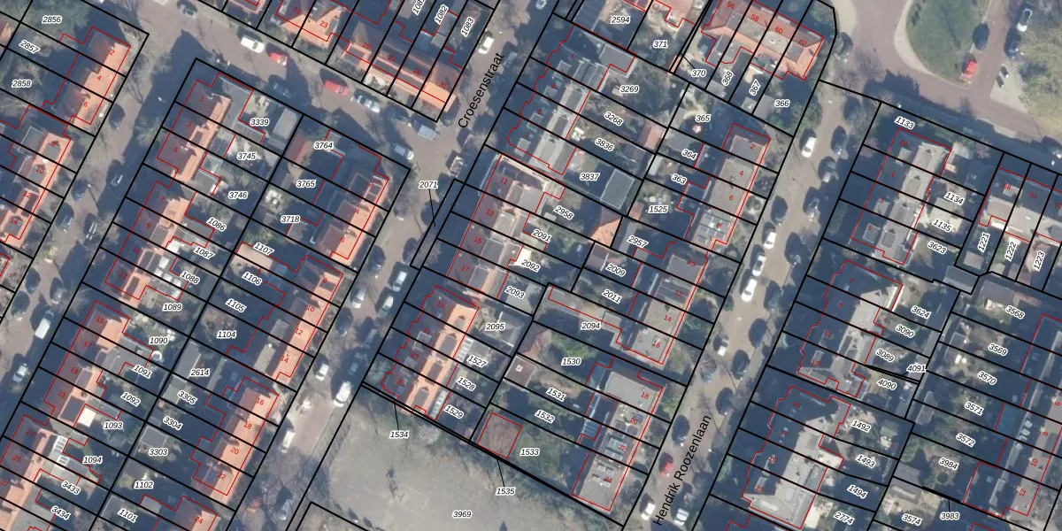Gebruik de zoekbalk of klik op een perceel om informatie over het perceel te bekijken.