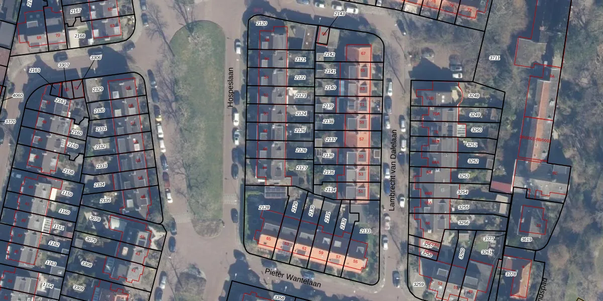 Gebruik de zoekbalk of klik op een perceel om informatie over het perceel te bekijken.