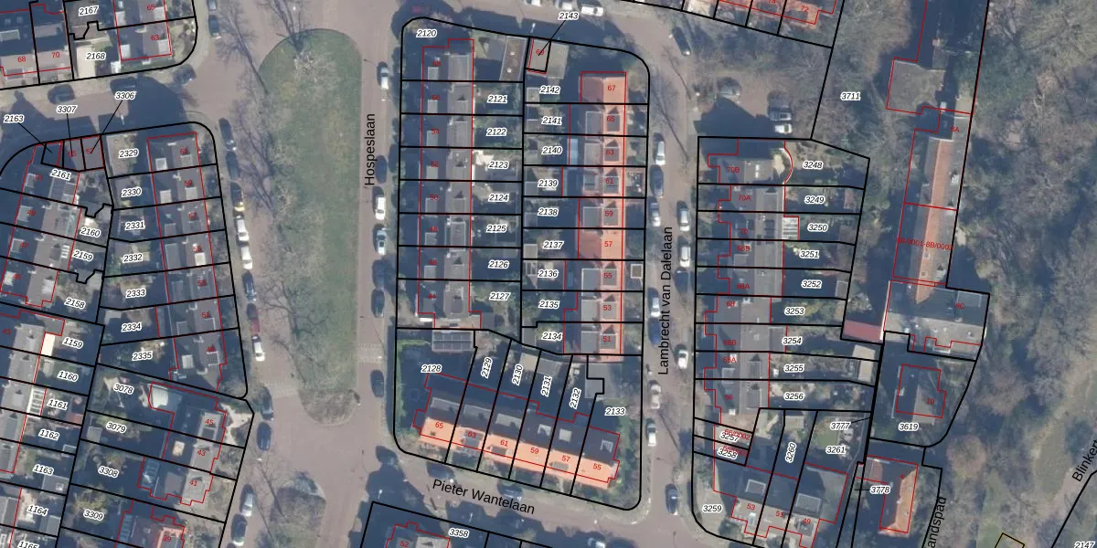 Gebruik de zoekbalk of klik op een perceel om informatie over het perceel te bekijken.