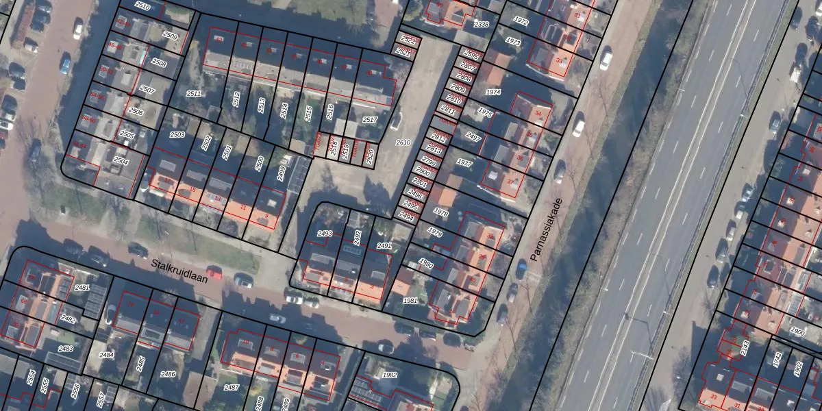 Gebruik de zoekbalk of klik op een perceel om informatie over het perceel te bekijken.