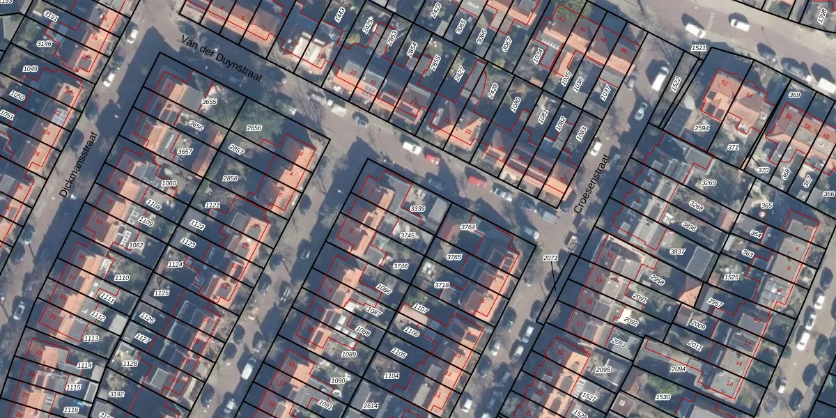 Gebruik de zoekbalk of klik op een perceel om informatie over het perceel te bekijken.