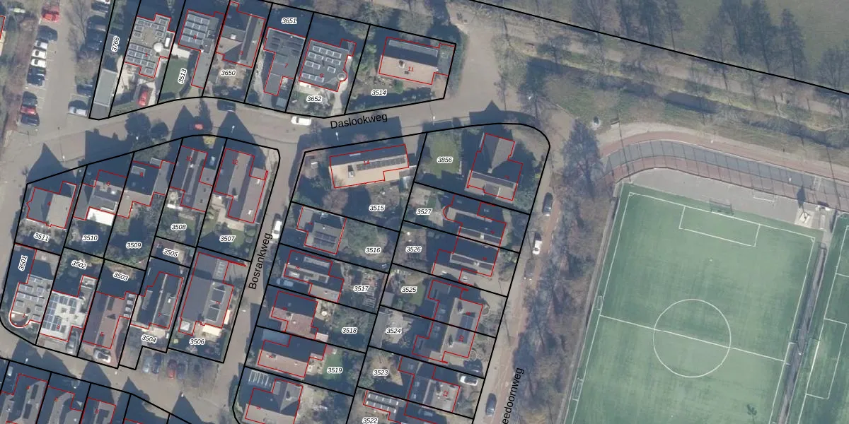 Gebruik de zoekbalk of klik op een perceel om informatie over het perceel te bekijken.