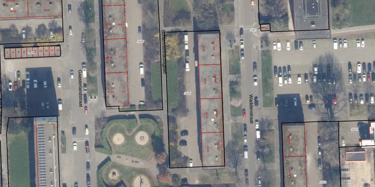 Gebruik de zoekbalk of klik op een perceel om informatie over het perceel te bekijken.