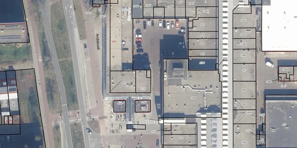 Gebruik de zoekbalk of klik op een perceel om informatie over het perceel te bekijken.