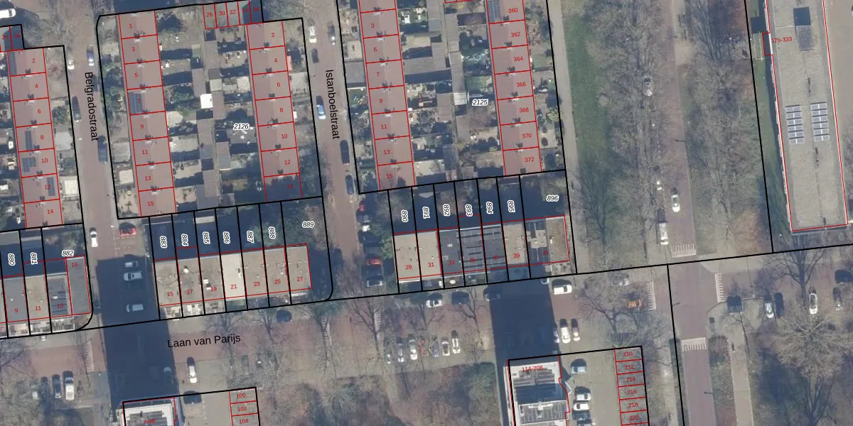Gebruik de zoekbalk of klik op een perceel om informatie over het perceel te bekijken.