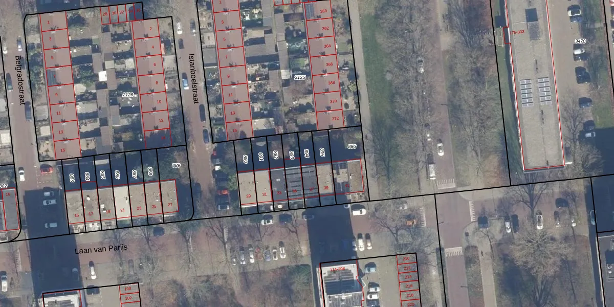 Gebruik de zoekbalk of klik op een perceel om informatie over het perceel te bekijken.