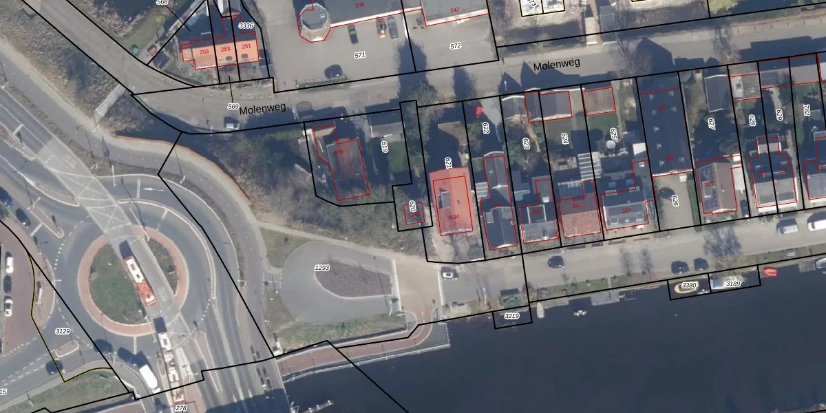 Gebruik de zoekbalk of klik op een perceel om informatie over het perceel te bekijken.