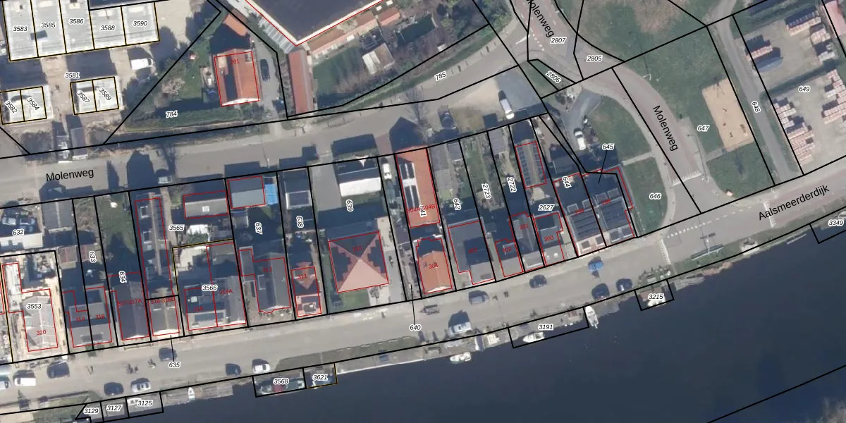 Gebruik de zoekbalk of klik op een perceel om informatie over het perceel te bekijken.