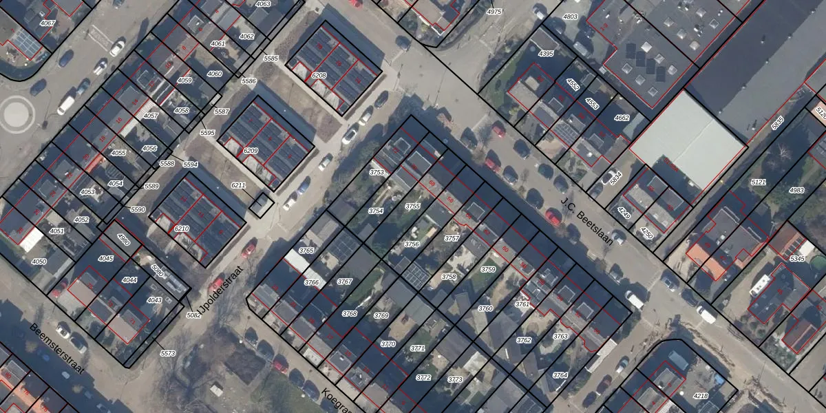 Gebruik de zoekbalk of klik op een perceel om informatie over het perceel te bekijken.