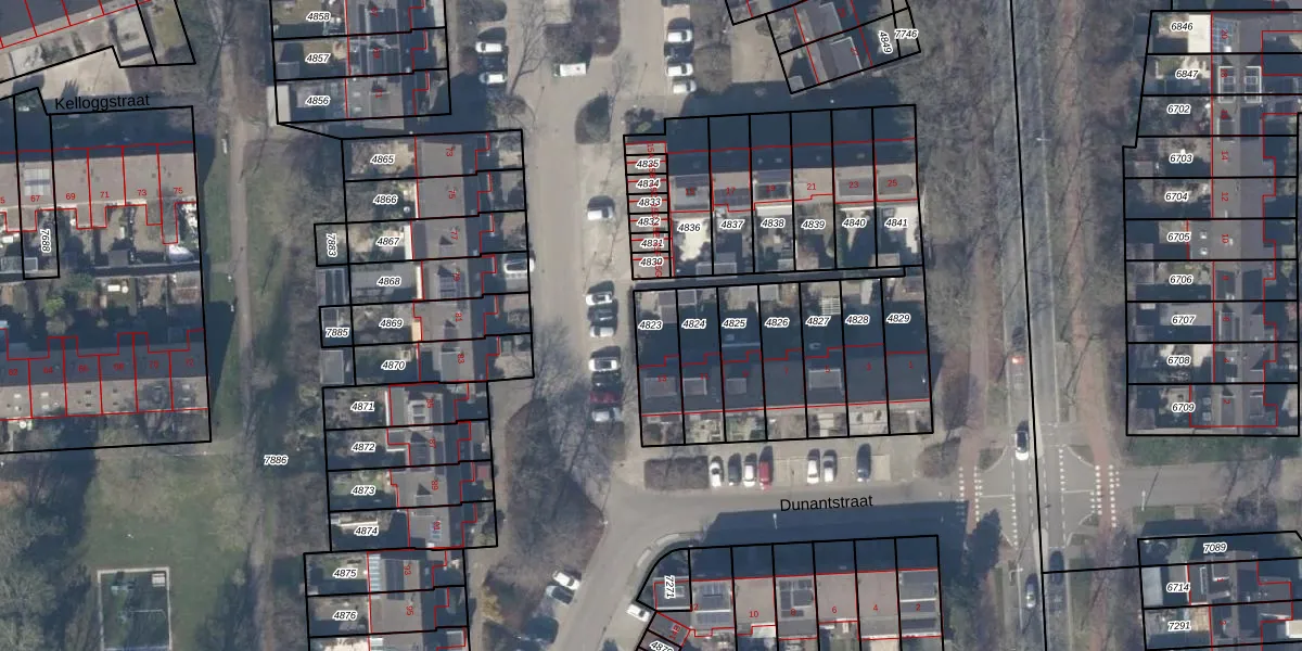 Gebruik de zoekbalk of klik op een perceel om informatie over het perceel te bekijken.
