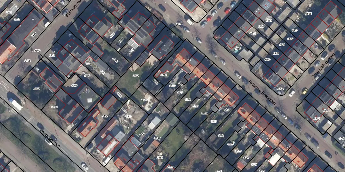 Gebruik de zoekbalk of klik op een perceel om informatie over het perceel te bekijken.