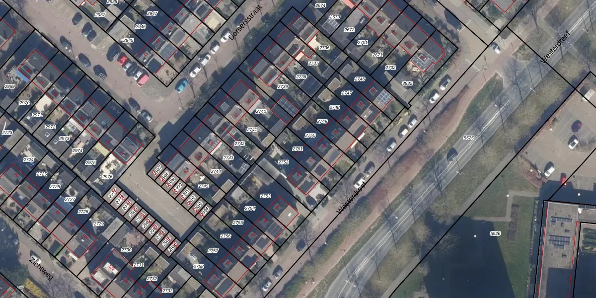 Gebruik de zoekbalk of klik op een perceel om informatie over het perceel te bekijken.