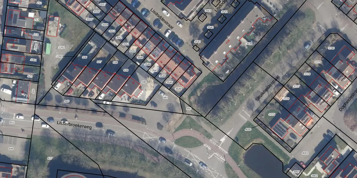 Gebruik de zoekbalk of klik op een perceel om informatie over het perceel te bekijken.