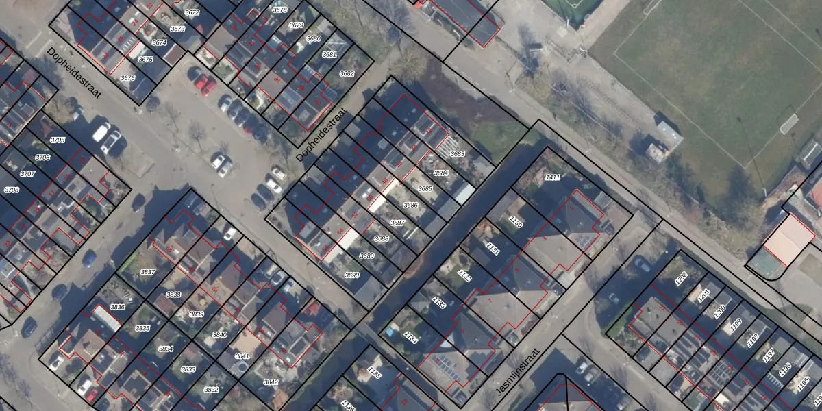 Gebruik de zoekbalk of klik op een perceel om informatie over het perceel te bekijken.