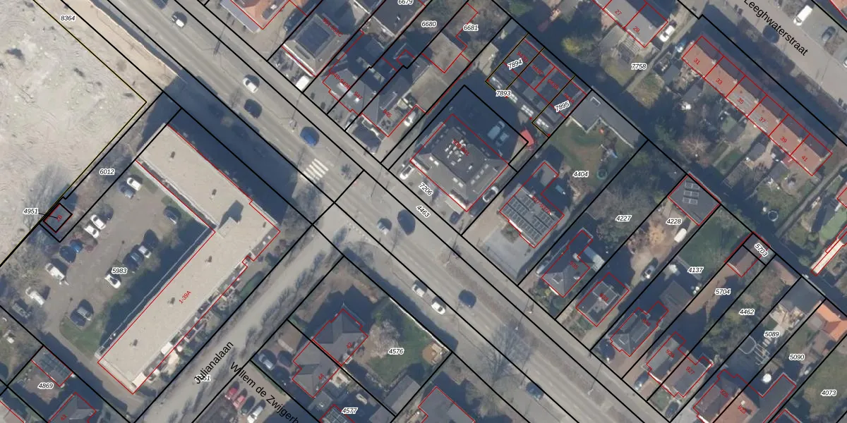 Gebruik de zoekbalk of klik op een perceel om informatie over het perceel te bekijken.