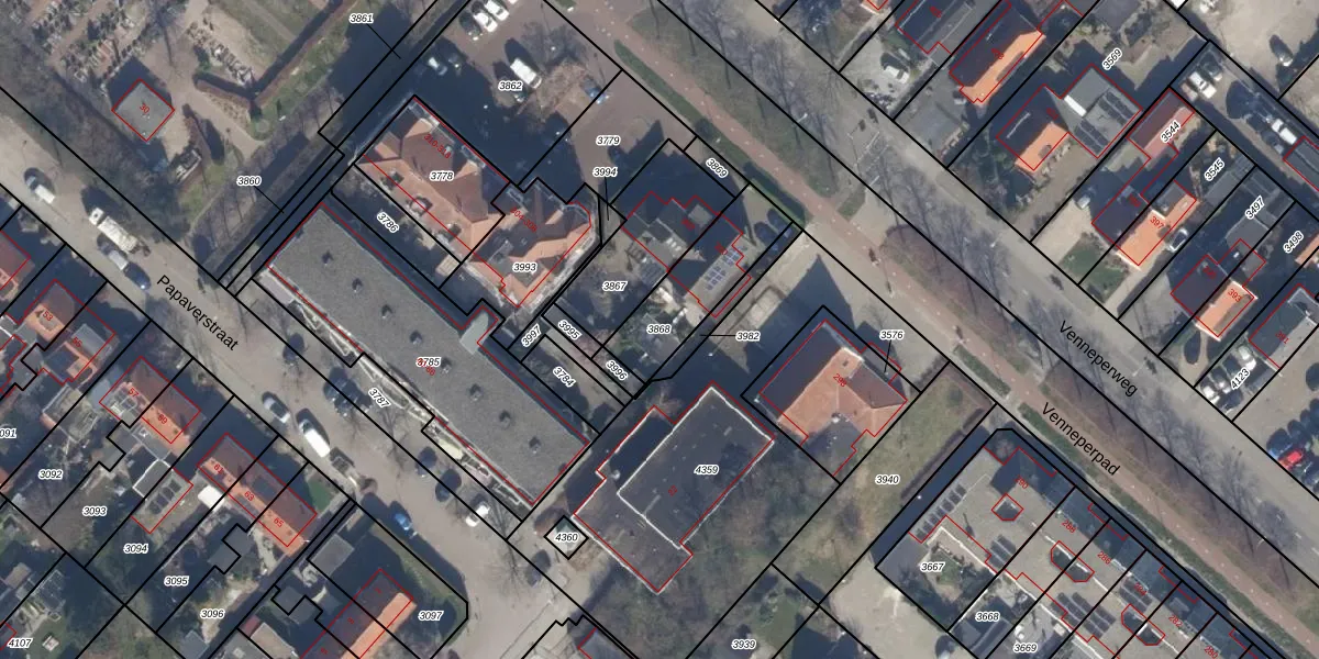Gebruik de zoekbalk of klik op een perceel om informatie over het perceel te bekijken.