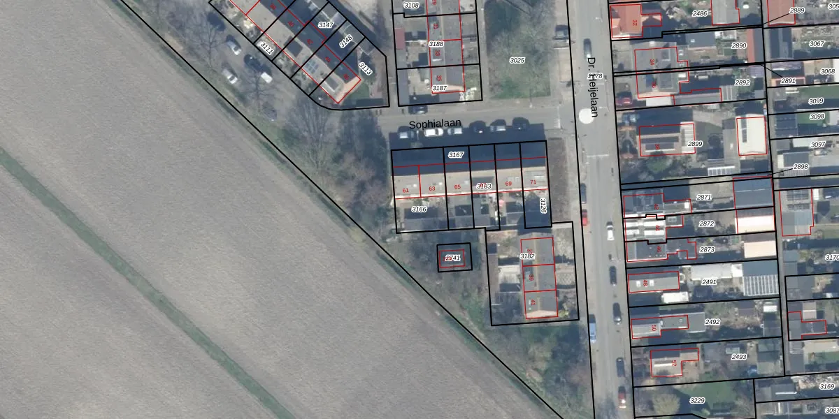 Gebruik de zoekbalk of klik op een perceel om informatie over het perceel te bekijken.