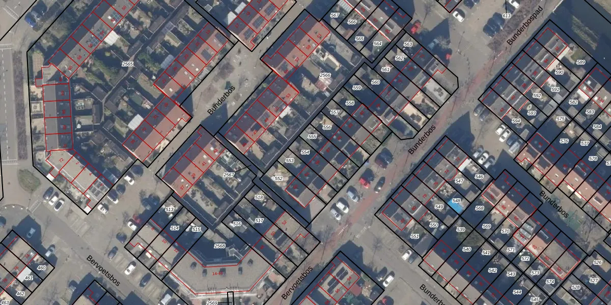 Gebruik de zoekbalk of klik op een perceel om informatie over het perceel te bekijken.