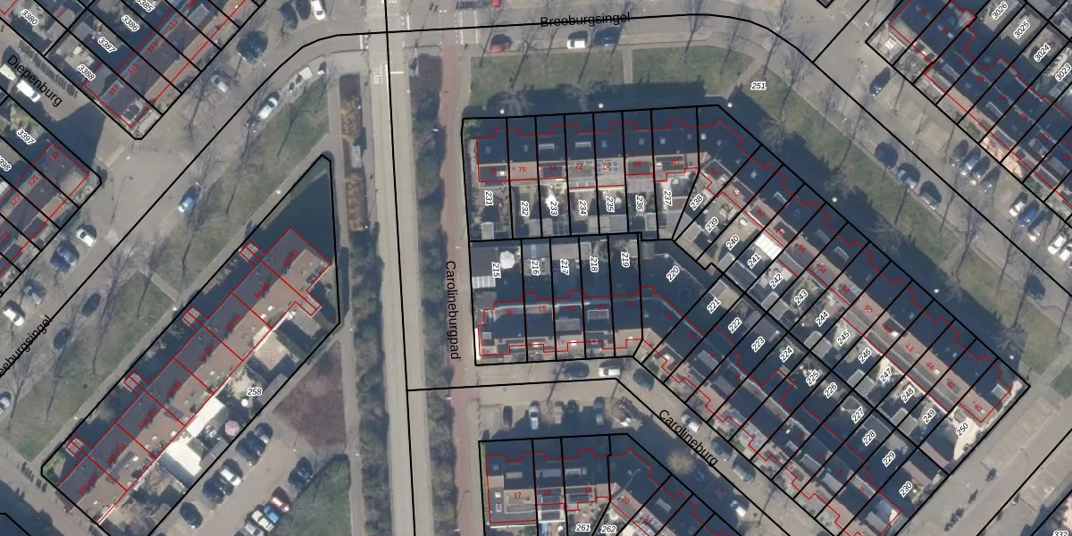 Gebruik de zoekbalk of klik op een perceel om informatie over het perceel te bekijken.