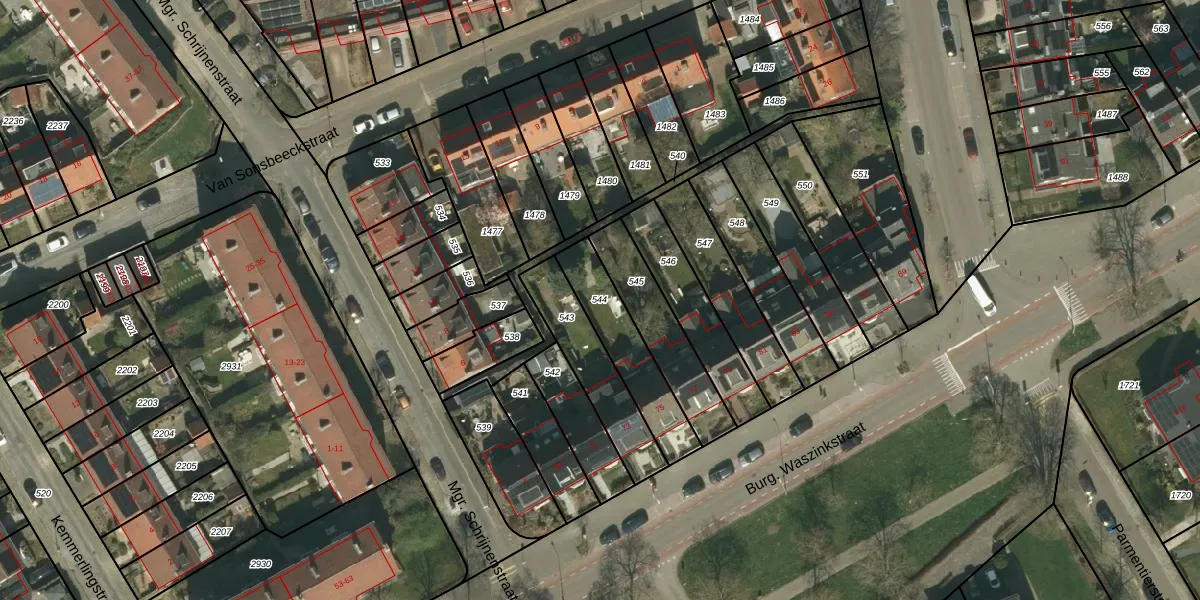 Gebruik de zoekbalk of klik op een perceel om informatie over het perceel te bekijken.