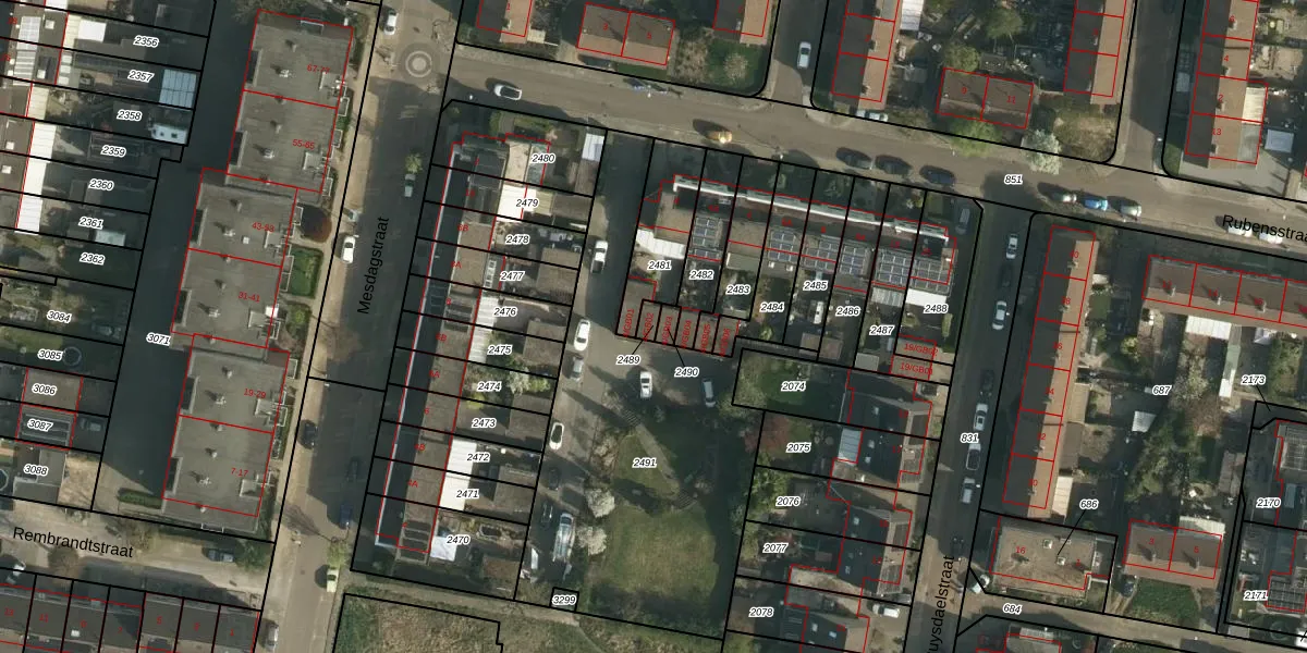 Gebruik de zoekbalk of klik op een perceel om informatie over het perceel te bekijken.