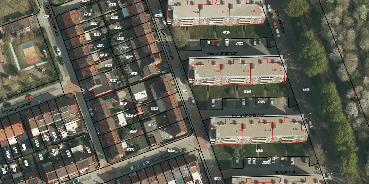 Gebruik de zoekbalk of klik op een perceel om informatie over het perceel te bekijken.