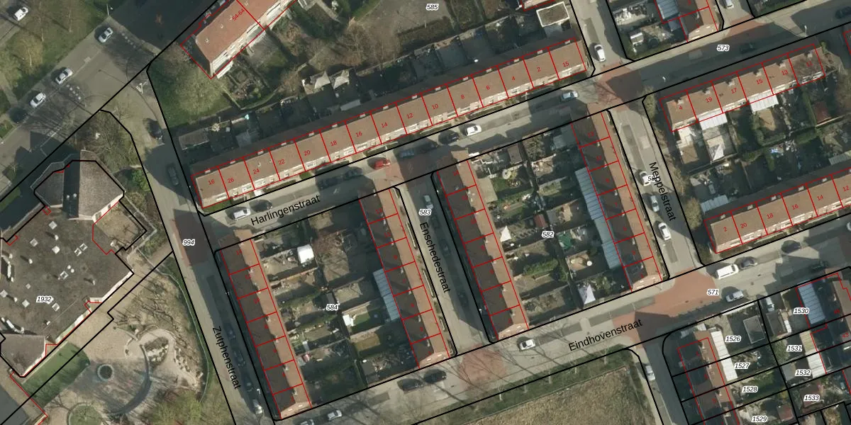 Gebruik de zoekbalk of klik op een perceel om informatie over het perceel te bekijken.