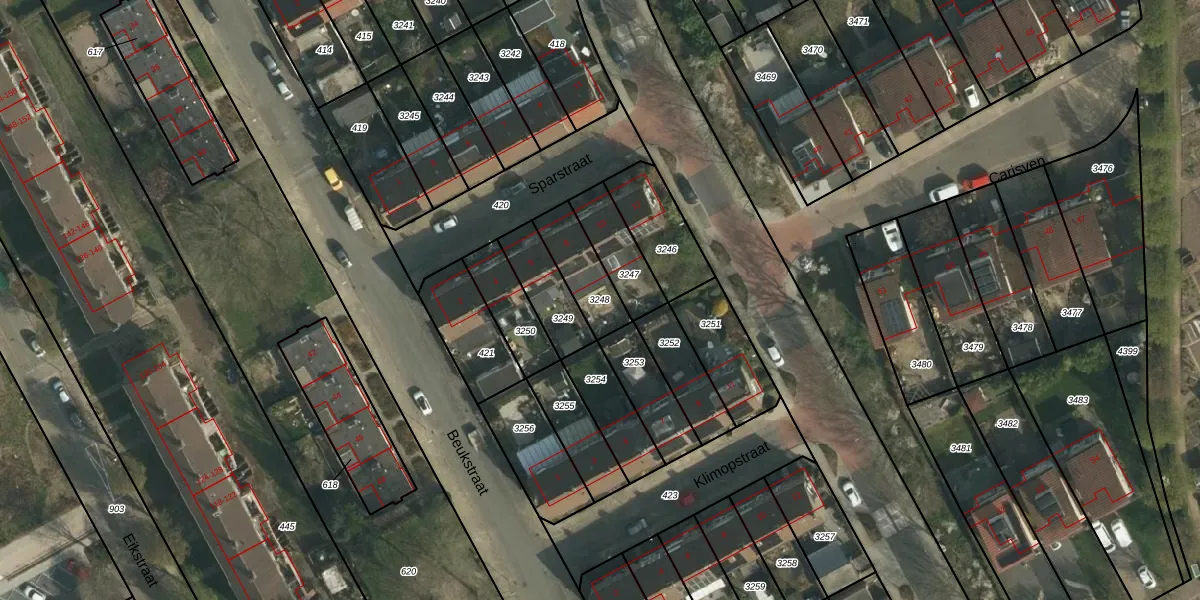 Gebruik de zoekbalk of klik op een perceel om informatie over het perceel te bekijken.