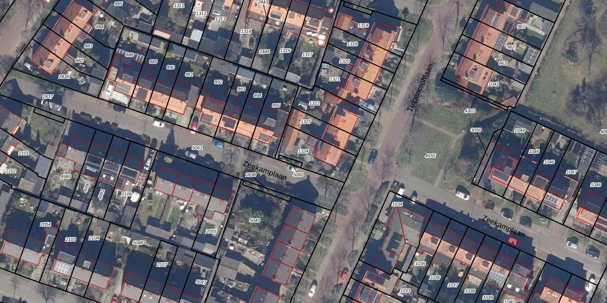 Gebruik de zoekbalk of klik op een perceel om informatie over het perceel te bekijken.