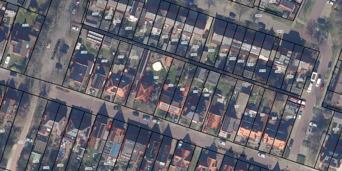 Gebruik de zoekbalk of klik op een perceel om informatie over het perceel te bekijken.
